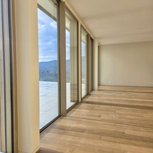L’attico gode infatti di una posizione dominante e regala una vista panoramica mozzafiato sul Golfo di Lugano e sulle montagne circostanti, offrendo uno scenario unico e irripetibile in ogni momento della giornata.